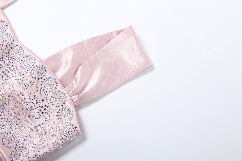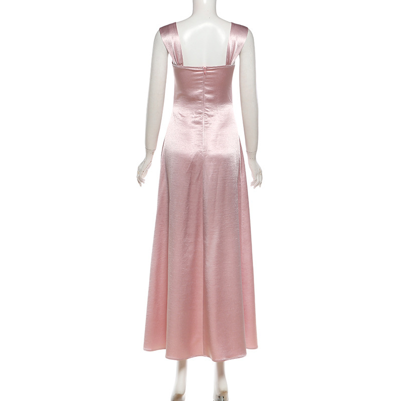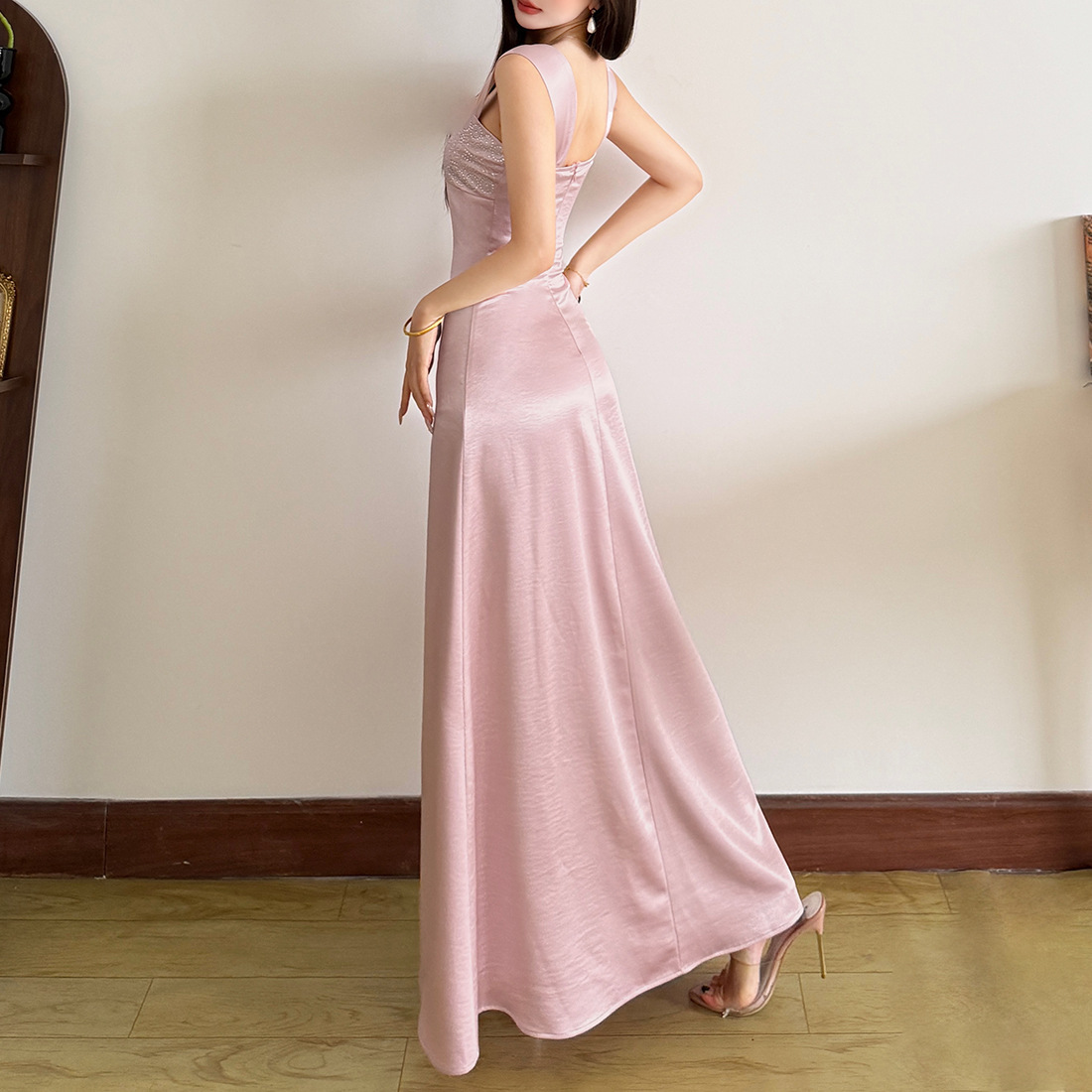 Backless Hot Pressed Diamond Waist Cinched Long Suspender Dress