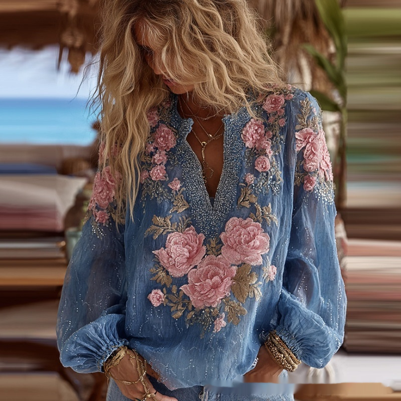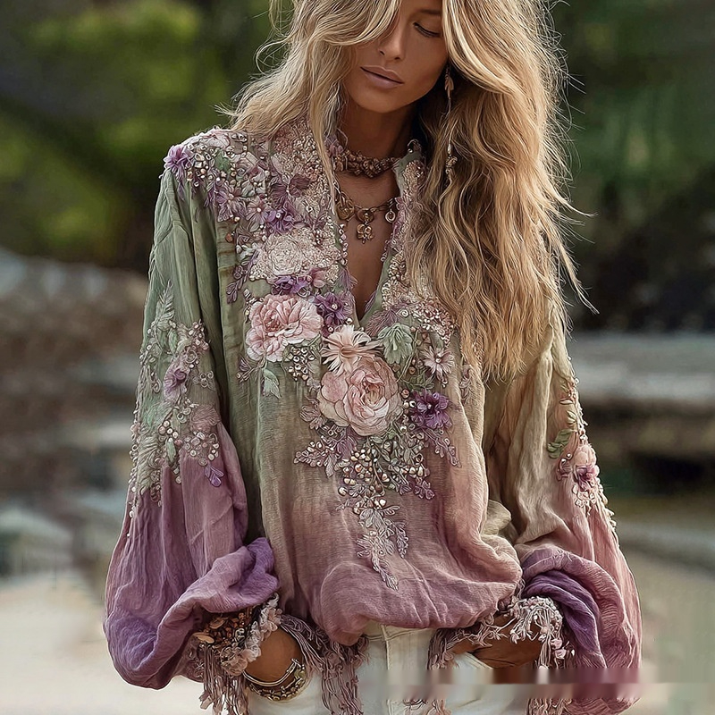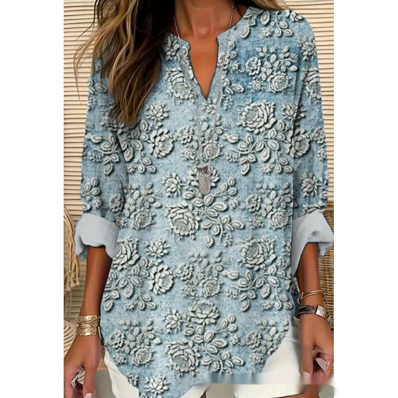Loose-fitting Casual Womens Shirt With A V-neck And A Printed Design