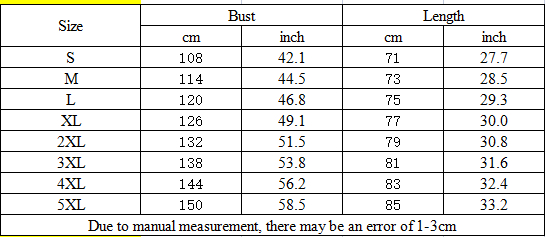 Sizes: XS, S, M, L, XL, 2XL, 3XL, 4XL, 5XL