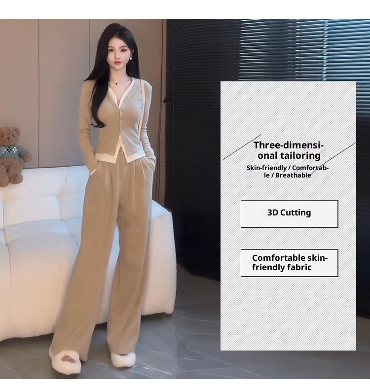 Plus-size High-waisted Wide-leg Pants Two-piece Set