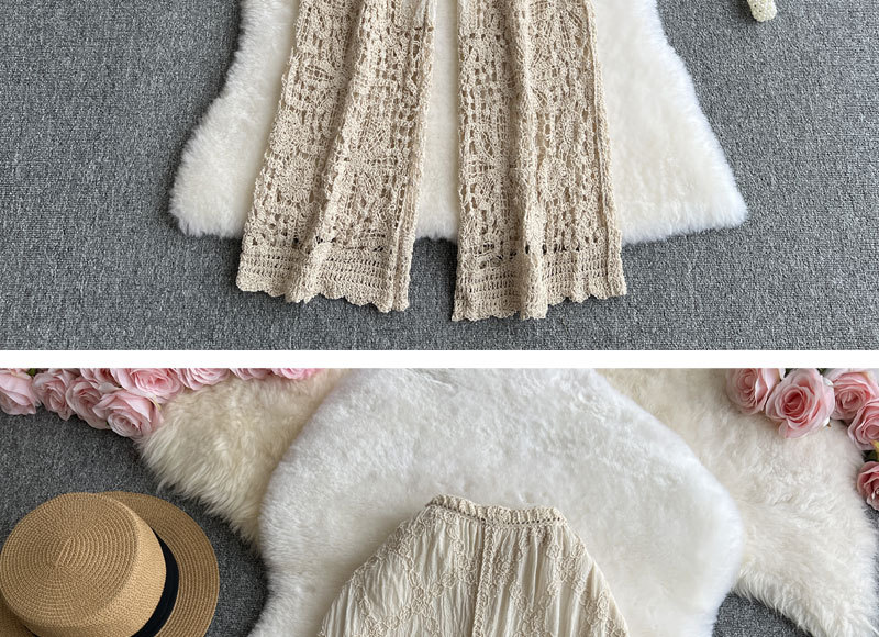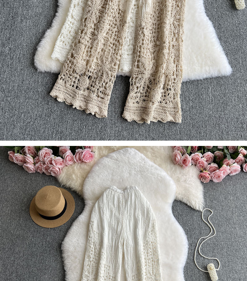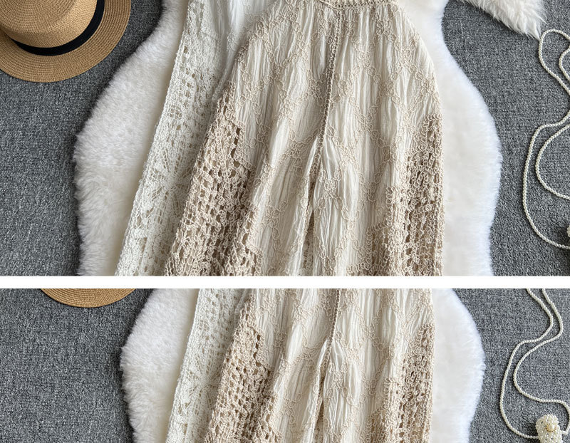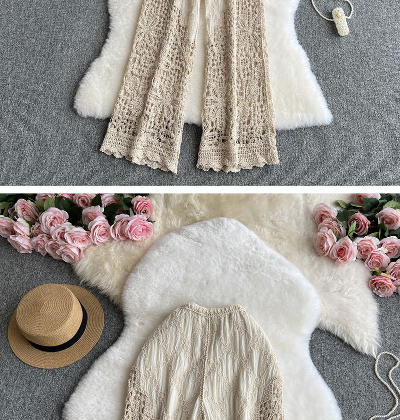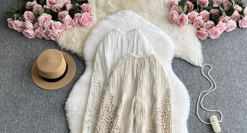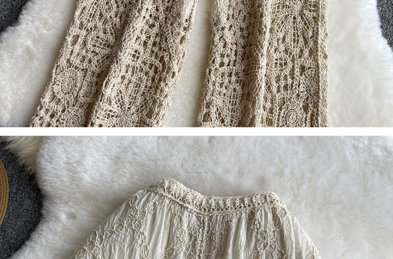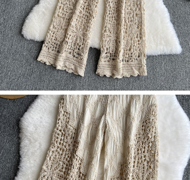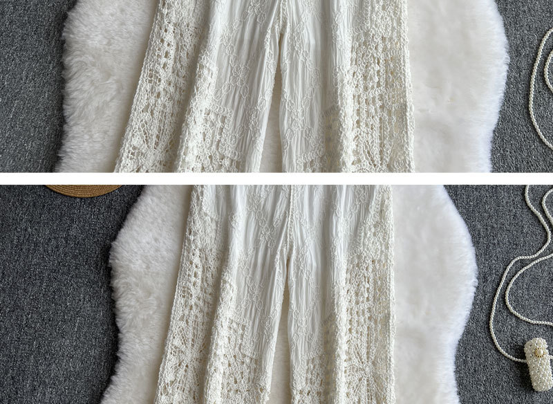 Trendy Retro Hollow-out Sheer High-waist Loose Wide-leg Pants