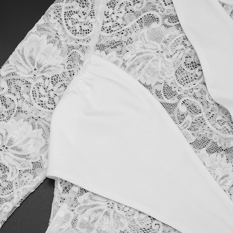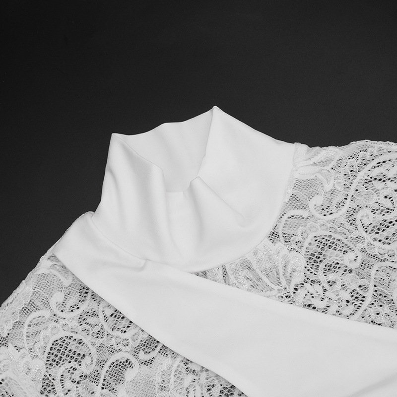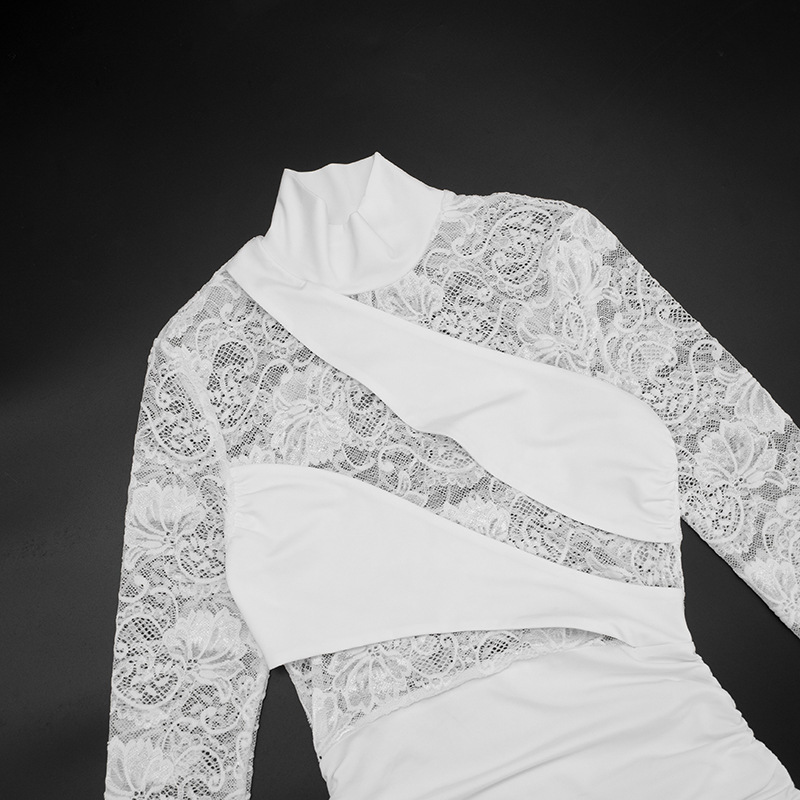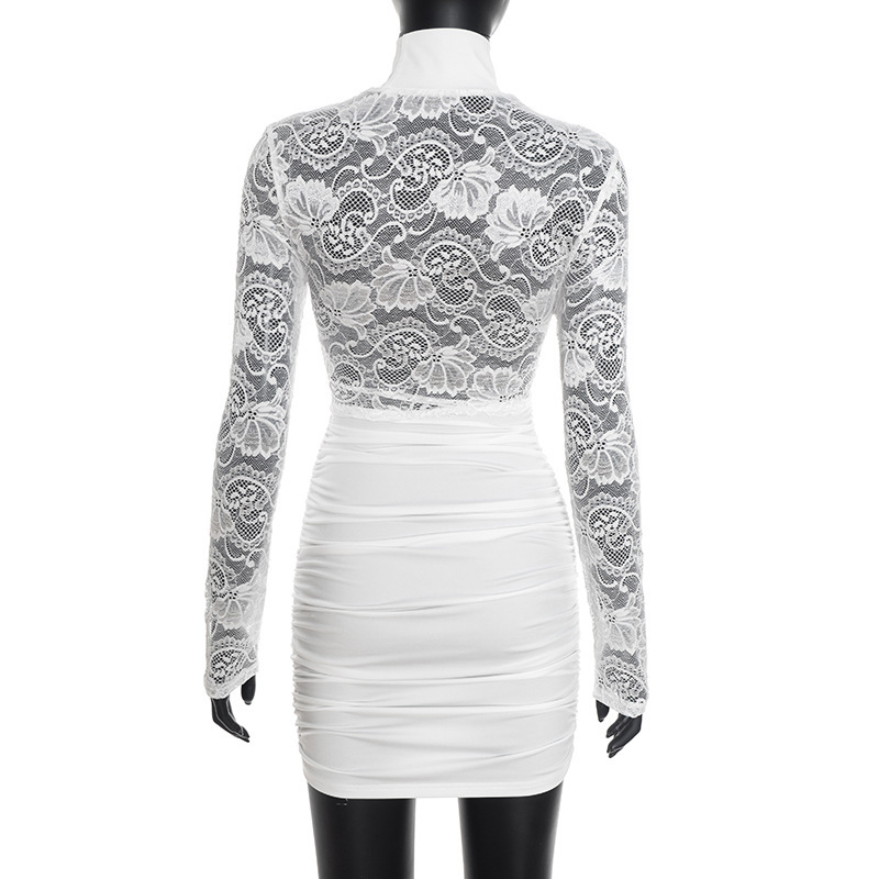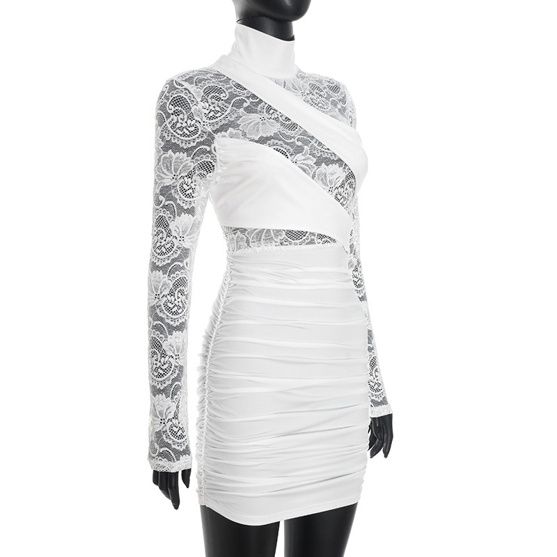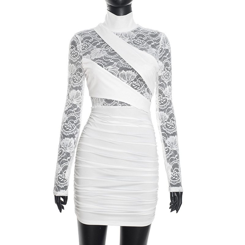 Womens Patchwork Lace Mock Neck Long-Sleeve Dress