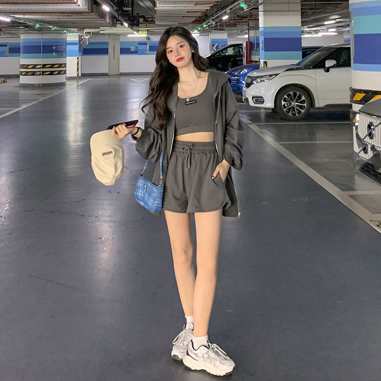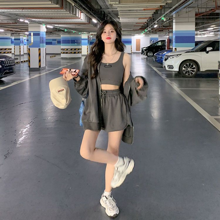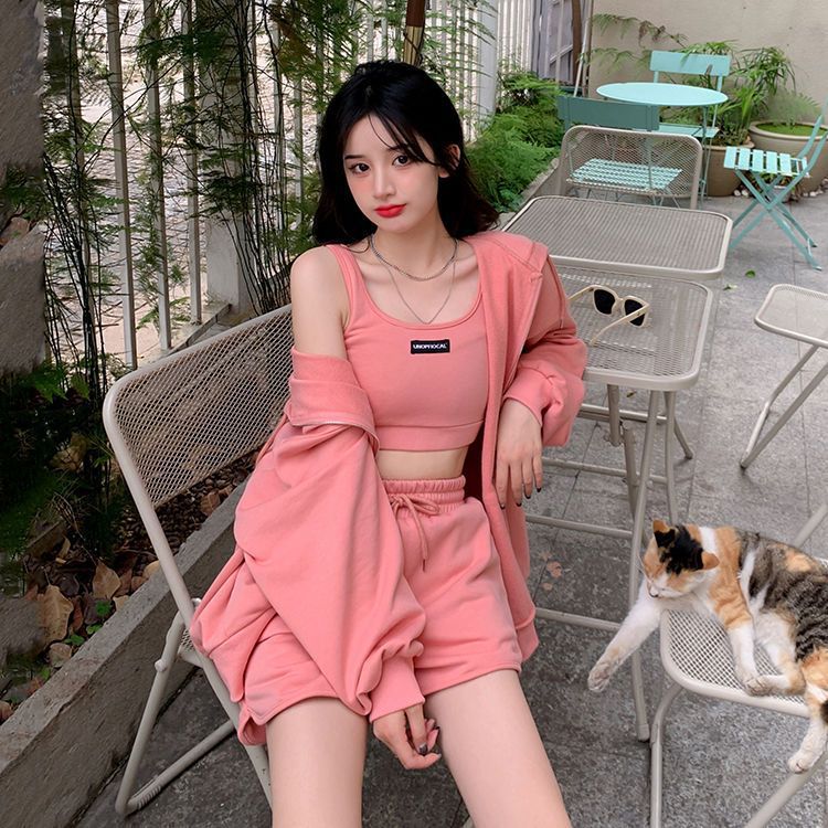 Womens Stylish Winter Zip-Up Hoodie Pants And Vest Set